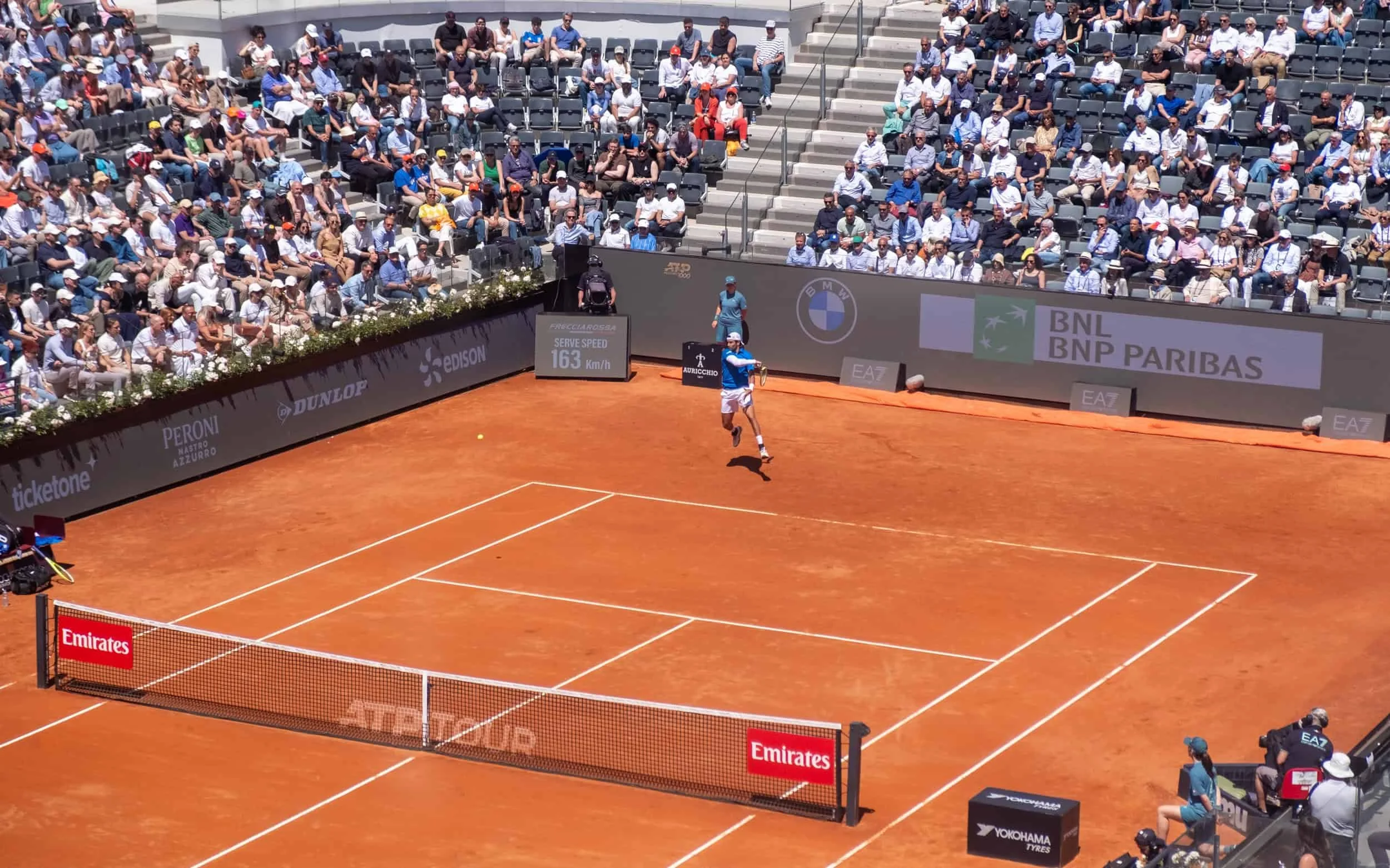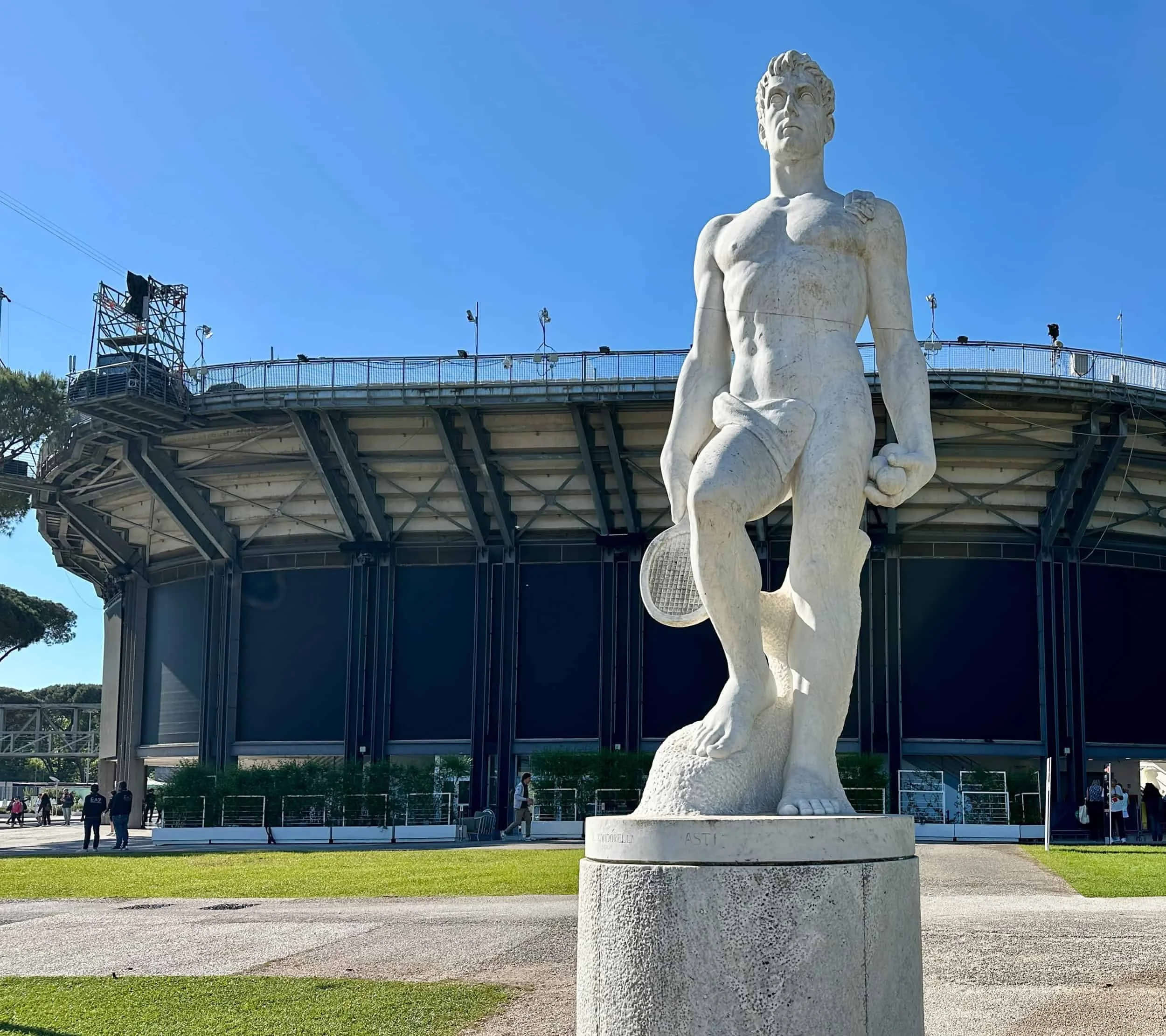 Contrary to the entries above, for this tournament, I only had one day to visit the Italian Open, getting tickets from their website, was straight forward, and got tickets for the “day session” at the main court, the Stadio Centrale. I was lucky for an almost all-italian line-up, except Sinner, because he was playing until the evening. The “Foro Italico” is a beautiful sports complex, tennis courts, pools, etc.
