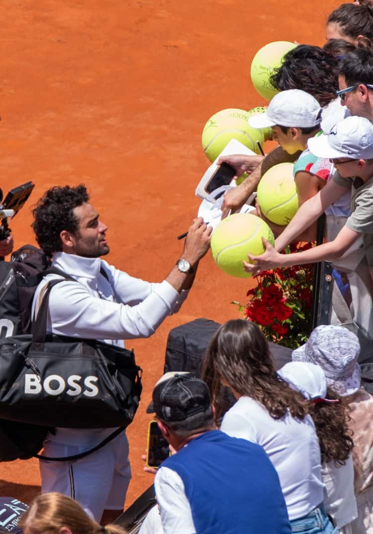 The day started with at the practice court next to the Stadio Centrale, watching Francis Tiafoe. Then, right away it was time to get ready at the Stadio Centrale to watch local hometown hero, Matteo Berrretini, against Jacob Fearnley. Berrettini won in straights sets, 7-6, 6-4.